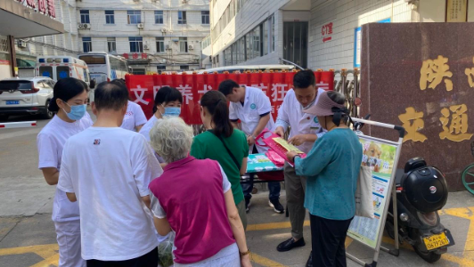 在第36个“国际禁毒日”即将来临之际,陕西省交通医院根据西安市卫健委《2023 年西安市卫生健康系统“禁毒宣传月”系列活动实施方案》要求,结合“健康人生,绿色无毒”主题,于2023年6月16日上午,在西工大早市、医院门前及门诊大厅开展禁毒宣传活动。 医院通过公众号发布禁...