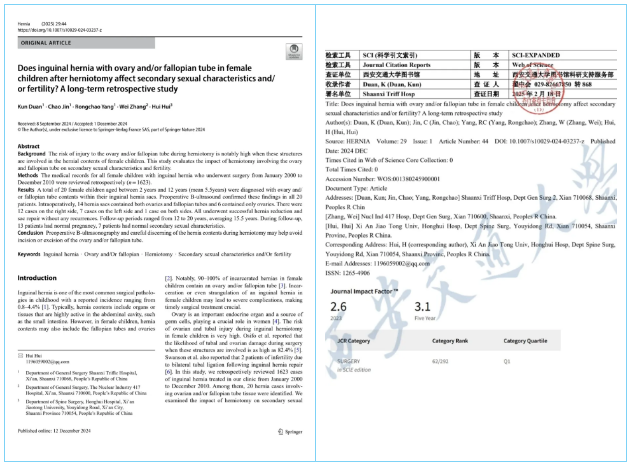 2025-04-07外二科普通外科专业组团队在腹股沟疝领域发表原创性SCI(科学引文索引)论文